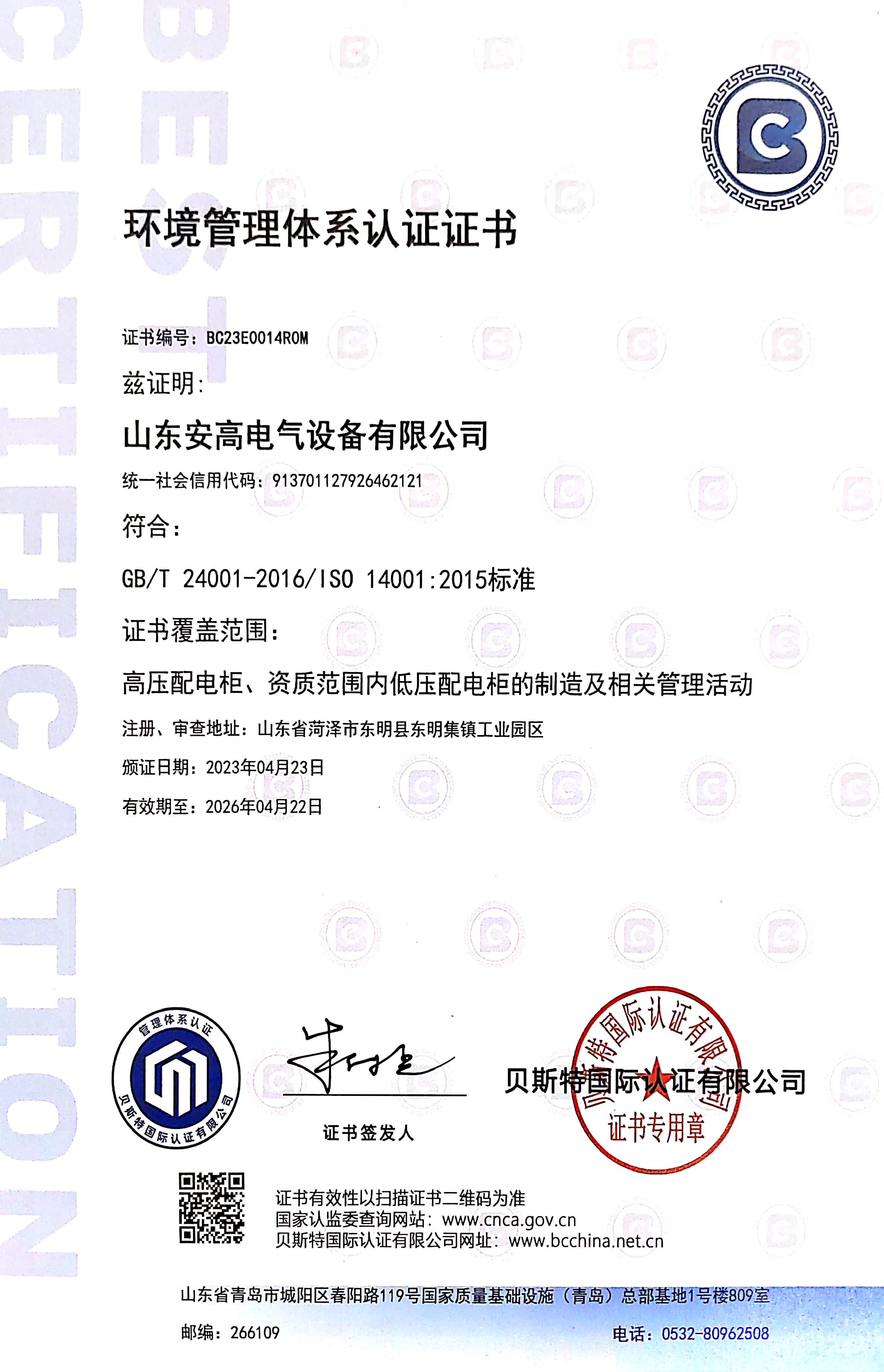 • 環(huán)境管理體系認證
